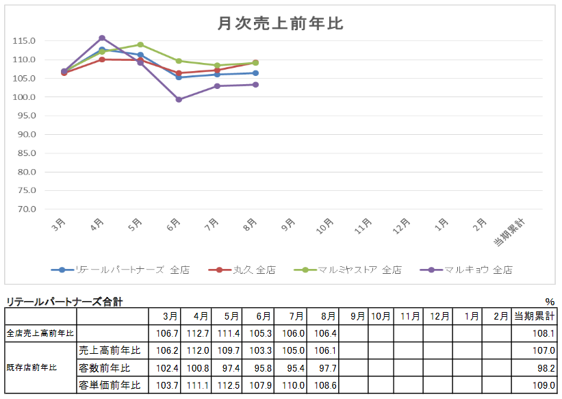 リテールパートナーズnews|8月既存店6.1%増/3~8月は7.0%増