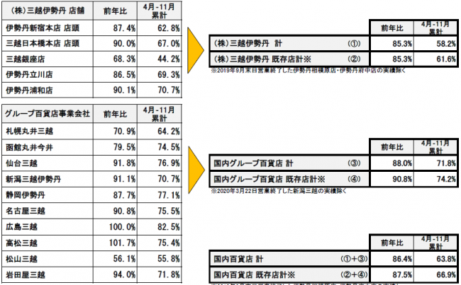 11月百貨店売上速報news|コロナ第3波で売上高4社とも前年比マイナス