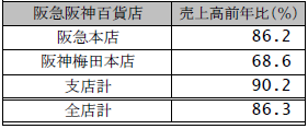 中旬以降、新型コロナウイルス感染症第3波の影響によってミセス・シニア層の来店が大幅に減少した。とくに20日(金)を境に来店客数・売上高の水準が大幅に低下した。21日(土)からの3連休も、梅田の店舗では大きな底上げにはつながらなかった。全店ベースでは対前年比13.7%減となった。