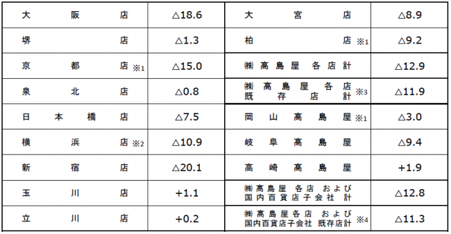 一部店舗では売上げが前年を上回ったが、首都圏と札幌など、とくに新型コロナウイルスの感染が再拡大した地域においては入店客数が減少した影響で、既存店売上高は対前年比12.5%減となった。全店ベースでは13.5%減だった。