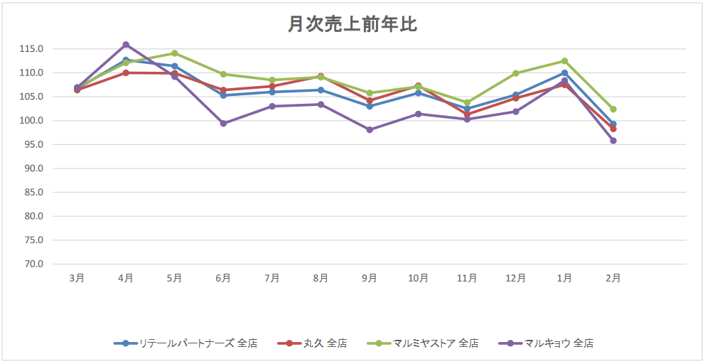 リテールパートナーズnews|2月既存店今期最後に初の2.1%減/客数8.6%減