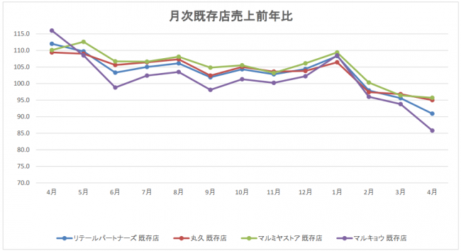 リテールパートナーズnews|4月既存店9.1%減/特需反動で3カ月連続減