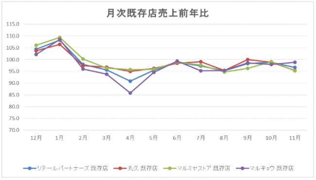 リテールパートナーズnews|11月既存店3.3%減/特需反動で10カ月連続減