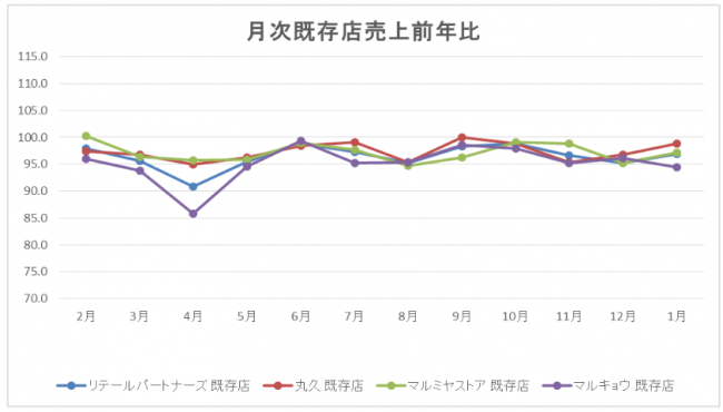 リテールパートナーズnews|1月既存店3.1%減/特需反動で12カ月連続減
