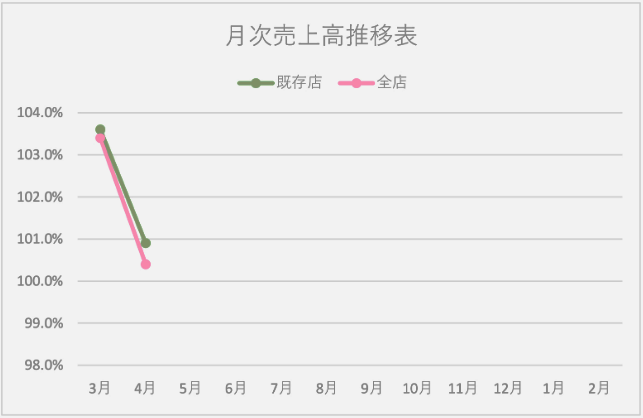 4月の総店舗数は487店舗。