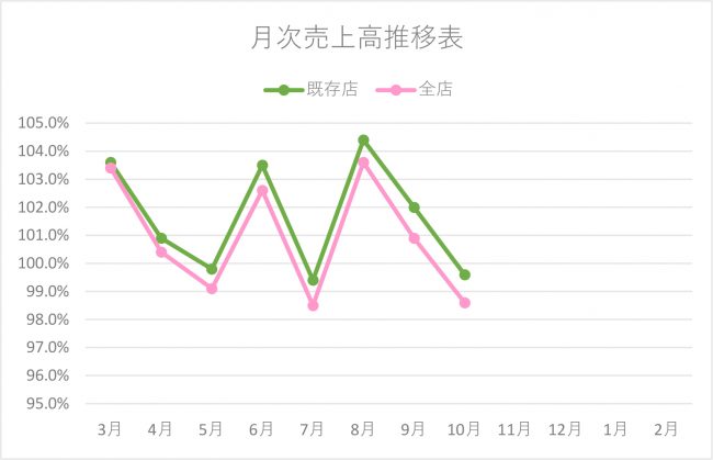 流通スーパーニュース > 月次 > フジnews|10月既存店0.4%減/店舗活性化で2店舗を改装 フジnews|10月既存店0.4%減/店舗活性化で2店舗を改装 月次 / 2024年11月18日 ツイート (株)フジ(広島県広島市、山口普社長)が10月の月次営業速報を発表した。 既存店売上高99.6%、全店売上高は98.6%と、前年を上回った。 10月は出退店はなく、総店舗数は487店舗。店舗活性化は2店舗で、マックスバリュ龍野店( 兵庫県たつの市、2103㎡)、マルナカパワーシティ善通寺店(香川県善通寺市、5330㎡)を改装した。 ツイート