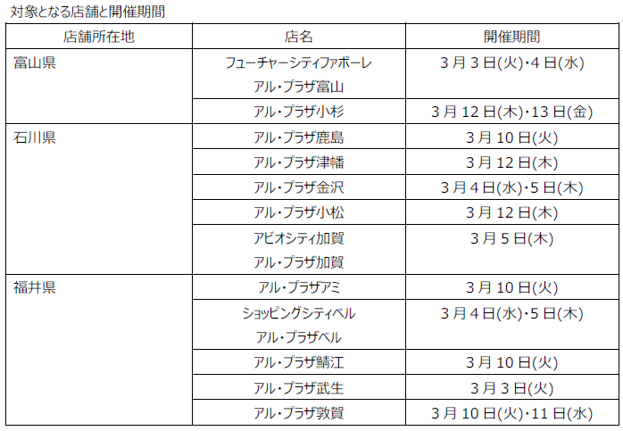 中止するイベントは「HOP カード会員様特別ご招待会」で、富山県・石川県・福井県内の大型ショッピングセンター12店舗で3月に開催予定であったものだ。