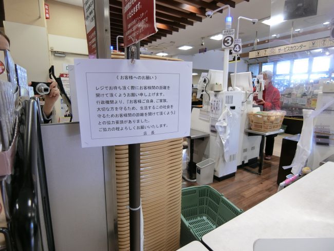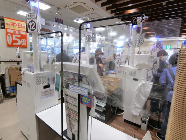 (2) お客とレジ係との間にレジガード(透明の間仕切り)を順次設置