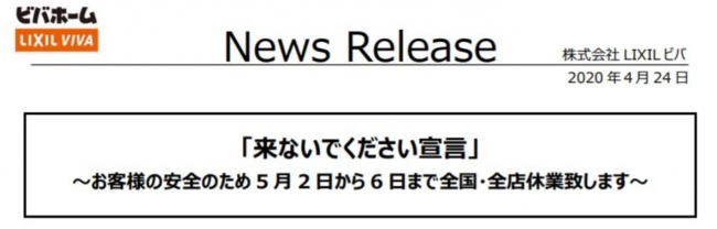 LIXILビバnews|コロナ対策5/2~5/6全店休業/さいたま医療機関に物資提供