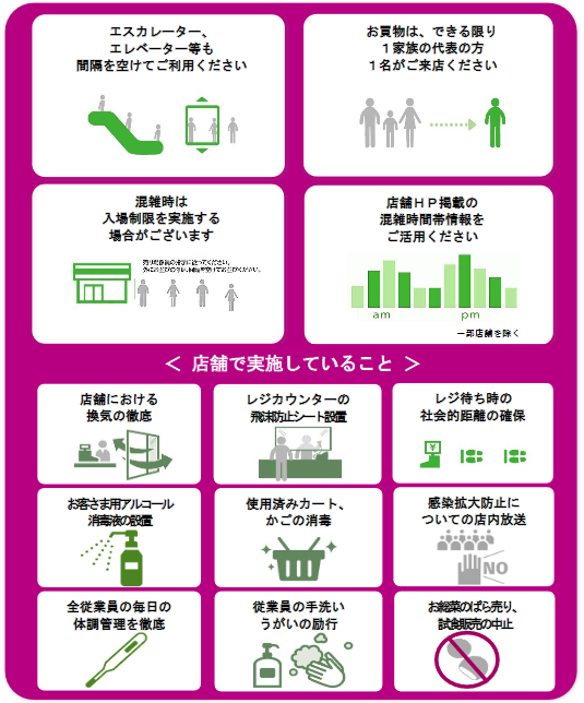 第3は、「ゆうゆう優先対象レジ」の設置拡大。妊婦、乳幼児連れ、高齢者、障がい者などのお客を対象に14時から15時の時間帯にヘルプマークをつけた優先レジでの対応を行う。すでに4月26日(日)に大阪府の35店舗で開始し、5月4日(月)現在、約210店舗で実施しているが、さらに店舗への導入・設置を進める。
