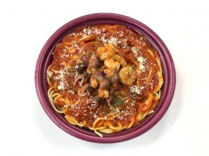 「富山湾産ホタルイカのペスカトーレ」は税別480円。発売は7月15日(水)。プリプリとした食感のホタルイカを盛り付けたパスタ。