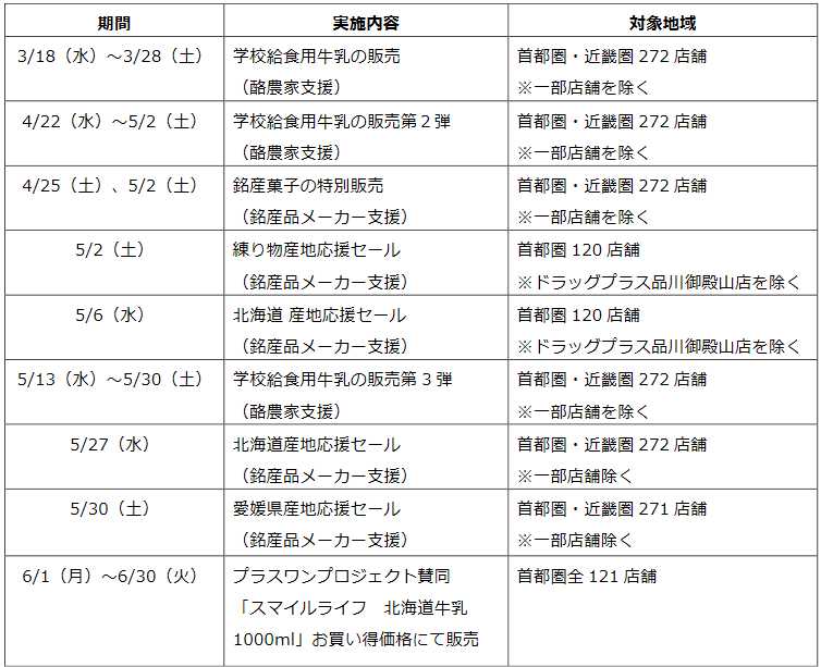 ライフコーポレーションでは、新型コロナウイルス感染症で打撃をうけた生産者を支援する取り組みを進めている。6月は消費・需要が減ってしまった牛乳やヨーグルトなどの乳製品を、モ~1杯(1本)多く消費しようという「プラスワンプロジェクト」に賛同して、「スマイルライフ 北海道牛乳(1000ml)」を特別価格で販売している。