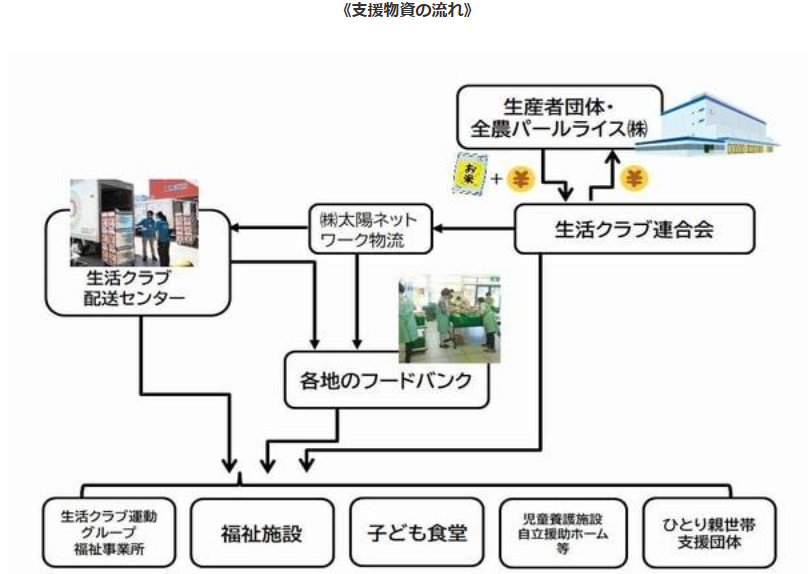 生活クラブの物流センターや各地域の配送センター、関連物流会社など自前の物流網を活用することで、地域の福祉施設や子ども食堂などへ効率よく配送する。6~7月にかけて行っているが、今後も継続して支援していく考えだ。