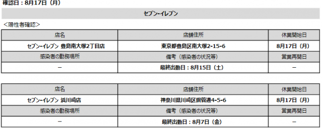セブン&アイnews|8/18・19発表のコロナ感染、セブン-イレブン7店舗7人