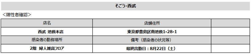 セブン&アイnews|8/28感染発表、アリオ4店舗と西武池袋本店