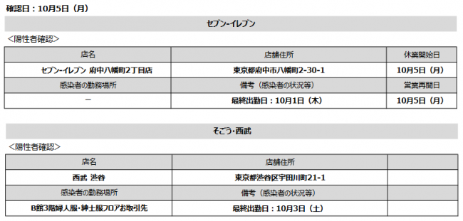 流通スーパーニュース > 新型コロナ > セブン&アイnews|10/6感染、セブン‐イレブンと西武渋谷で陽性者 セブン&アイnews|10/6感染、セブン‐イレブンと西武渋谷で陽性者 新型コロナ / 2020年10月06日 ツイート (株)セブン&アイ・ホールディングス(東京都千代田区、井阪隆一社長)が10月6日(火)に確認した新型コロナ感染者は、セブン‐イレブン府中八幡町2丁目店(東京都府中市八幡町2-30-1)と、西武 渋谷(東京都渋谷区宇田川町21-1)の2件。 また5日にはセブン‐イレブン大阪御幣島6丁目店とセブン‐イレブン大阪谷町9丁目店が営業再開している。 ツイート