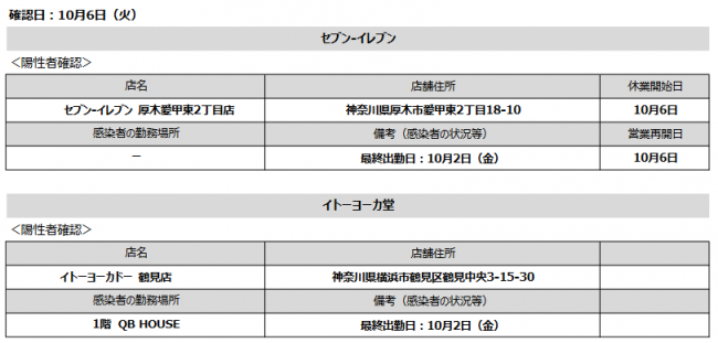 流通スーパーニュース > 新型コロナ > セブン&アイnews|10/7感染、セブン‐イレブンとイトーヨーカドー鶴見店 セブン&アイnews|10/7感染、セブン‐イレブンとイトーヨーカドー鶴見店 新型コロナ / 2020年10月07日 ツイート (株)セブン&アイ・ホールディングス(東京都千代田区、井阪隆一社長)が10月7日(水)に確認した新型コロナ感染者は、セブン‐イレブン厚木愛甲東2丁目店(神奈川県厚木市愛甲東2丁目18‐10)と、イトーヨーカドー鶴見店(神奈川県横浜市鶴見区鶴見中央3‐15‐30)の2件だった。 ツイート
