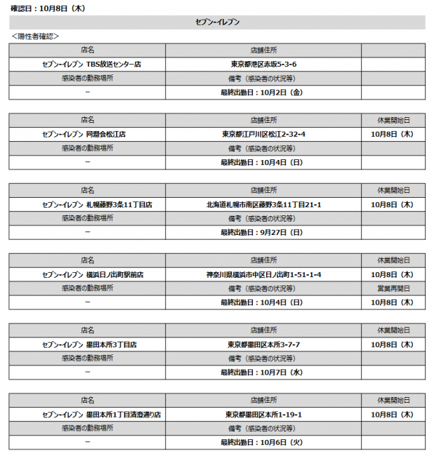 セブン&アイnews|10/8感染、セブン‐イレブン・イトーヨーカドーの8店舗