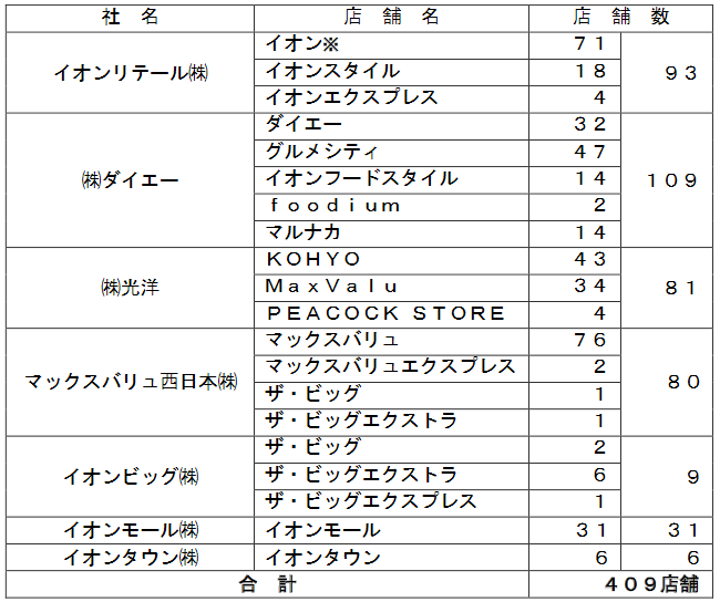 イオングループのイオンリテール(株)、(株)ダイエー、(株)光洋、マックスバリュ西日本(株)、イオンビッグ(株)、イオンモール(株)、イオンタウン(株)7社は、12月14日(月)から近畿2府4県の409店舗で「新型コロナウイルス医療従事者支援募金」を実施している。