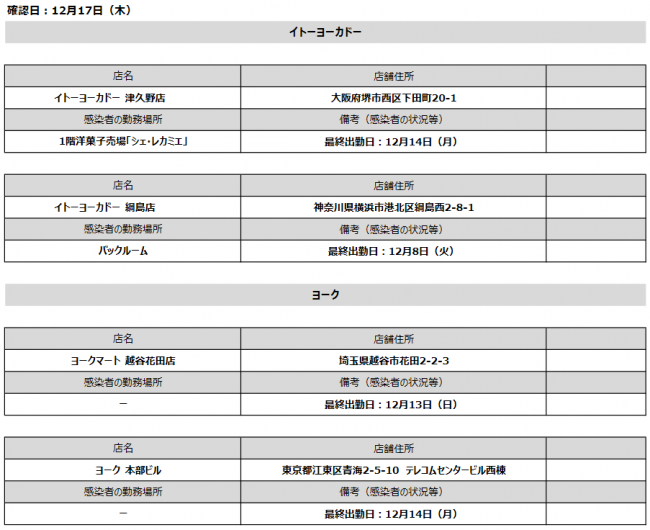 セブン&アイnews|12/18感染者発表/イトーヨーカドー・ヨークマートなど