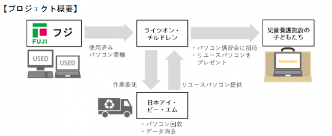 フジは同プロジェクトの趣旨に賛同し、社会貢献活動の一環として約2000台の使用済みパソコンを寄贈する。また、2月23日(日)、24日(振替休日)に高知市内で開催されるパソコン講習会に協賛企業として参加する。