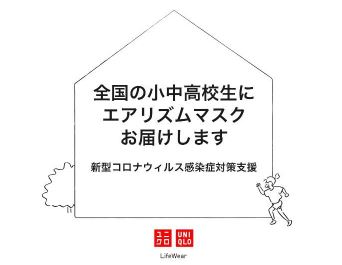 (株)ユニクロ(山口県山口市、柳井正会長兼社長)は、感染拡大が深刻化する新型コロナウイルス感染症対策を支援するため、全国の小中高校の児童・生徒と職員を対象に「エアリズムマスク」100万パック(300万枚)を寄贈する。