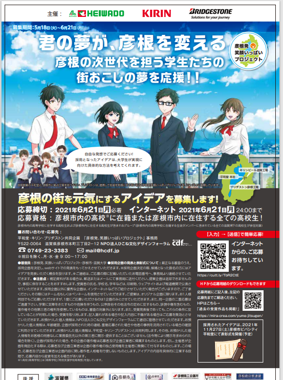 この企画は、街づくりの次世代リーダーとなる地元彦根の高校生に「地域資源を生かした活動」や「地域の課題解決に繋がる活動」といったテーマで企画を募集し、応募された中から優秀企画を選定、その企画の実現までのプロセスを3社がサポートするという取り組みだ。