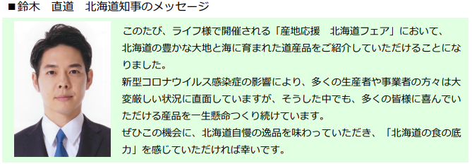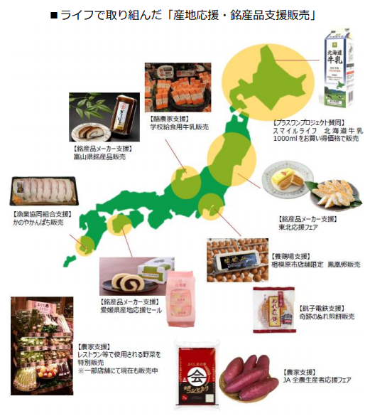 流通スーパーニュース > CSR > ライフnews|首都圏店舗で北海道応援フェア/銘産品メーカー支援 ライフnews|首都圏店舗で北海道応援フェア/銘産品メーカー支援 CSR / 2021年05月17日 ツイート (株)ライフコーポレーション(大阪本社:大阪市淀川区、東京本社:東京都台東区、岩崎高治社長)は5月15日(土)から、銘産品メーカーの支援を目的として、北海道の人気お土産品を首都圏ライフで特別販売している。 ライフでは新型コロナウィルス感染拡大の影響が長期化し、観光産業が不振のなか、経営が厳しい各地の生産者を支援するため「産地応援フェア」を実施している。お客から観光気分を味わえると好評の企画だ。 ツイート