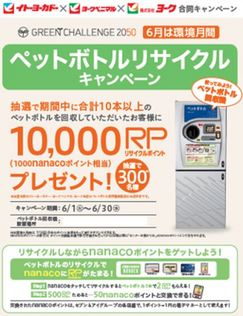 同社は環境問題などの社会的課題に対して、顧客と一緒に日常の買物の中でできる取り組みとして「サーキュラーエコノミー」を推進している。セブン-イレブンやイトーヨーカドー、ヨークベニマル、ヨークの各店舗に設置されているペットボトル回収機の設置台数は、2021年2月末時点で1000台を超え、店舗を利用する顧客からの回収量は2020年度には計約3億3000万本になった。回収されたペットボトルは、グループの開発商品である「セブンプレミアム」の商品容器やパッケージ、肌着などの衣料品に再利用されている。