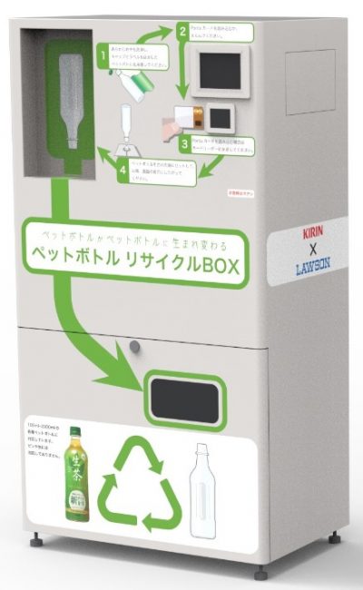 ローソン店舖に、キリングループが独自開発した「ペットボトル減容回収機」を設置する。店舗で収集したペットボトルは、キリンビバレッジの子会社である東京キリンビバレッジサービス(株)の自動販売機オペレーションルートを使って収集し、リサイクル工場へ搬入する。これにより運搬の効率化を図り、「ボトルtoボトル」の比率を引き上げていく。そして容器回収ルートの効率化によるCO2などの環境負荷低減も目指す。