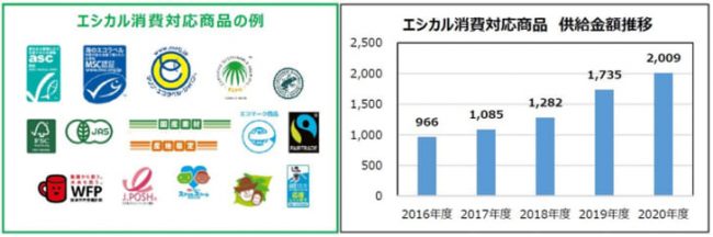2020年度のコープ商品のエシカル消費対応商品の供給高(売上高)は、前年比16.0%増の2009億円になった。日本生協連は2018年6月、全国の生協とともに「コープSDGs行動宣言」を採択し、コープ商品のエシカル消費対応を進めている。