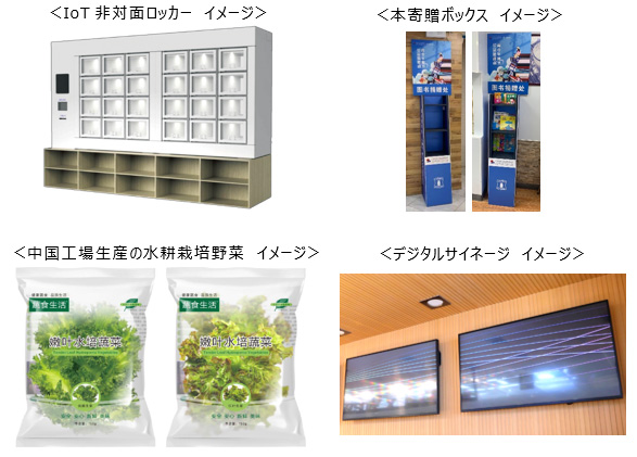 今回オープンする「ローソン大連青泥窪橋旗艦店」では、「ローソン七莘路1010号」に設置しているパナソニックの省エネ・省CO2最新設備に加えて、新たに専用のアプリで注文した商品が受け取れるIoT非対面ロッカー、商品・広告などの情報を表示するデジタルサイネージ、学校に寄贈する本寄贈ボックスの設置や、パナソニックの中国の植物工場で生産された水耕栽培野菜の販売を行う。