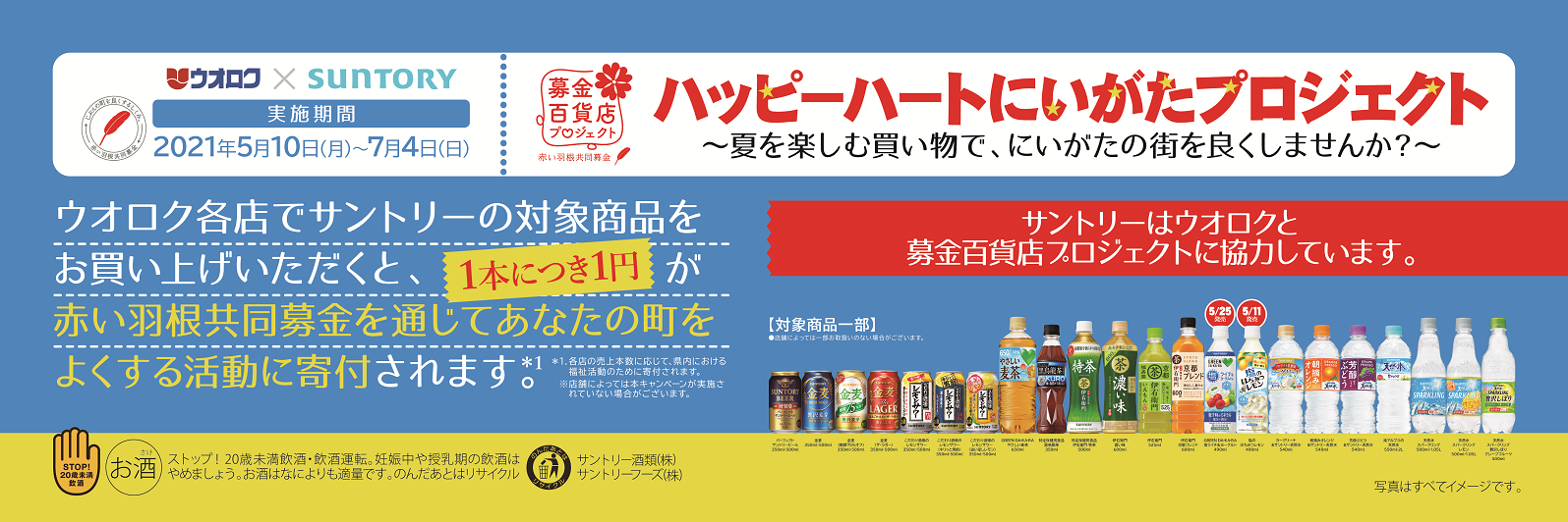(株)ウオロク (新潟市中央区、本多伸一社長)は5月10日(月)~2021年7月4日(日)の期間、「募金百貨店・ハッピーハートにいがたプロジェクト第10弾」に取り組んだ。