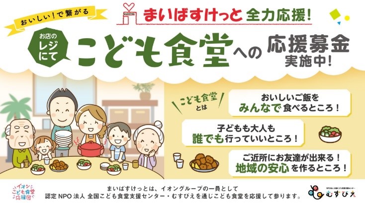 流通スーパーニュース > CSR > まいばすけっとnews|「イオンこども食堂応援団」募金212万円を寄付 まいばすけっとnews|「イオンこども食堂応援団」募金212万円を寄付 CSR / 2021年08月30日 ツイート まいばすけっと(株)(神奈川県横浜市、岩下欽哉社長)は、全国各地のこども食堂を通じて困難な状況にある子どもたちとその家族を支える「イオンこども食堂応援団」の活動に賛同し、7月3日~8月1日までの期間、956店舗(7月16日開店までの店舗)で募金活動を行った。 その募金訴額212万2261円を「NPO法人全国こども食堂支援センター・むすびえ」に寄付し、全国各地のこども食堂の活動に役立ててもらう。 ツイート
