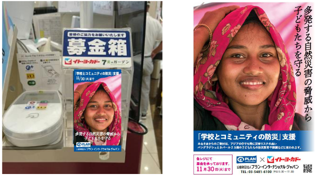 人口が多く災害に脆弱な地域が多いアジアでは、毎年多くの子どもたちが自然災害の被害に遭う。募金は、公益財団法人プラン・インターナショナル・ジャパンがバングラデシュとネパールの2カ国で、行政や地域の人々と協力しながら推し進める学校を中心とした防災活動や、子どもや若者たちがジェンダーの違いに関わらず、さまざまな脅威から身を守るスキルを高めるための活動に充てられる。