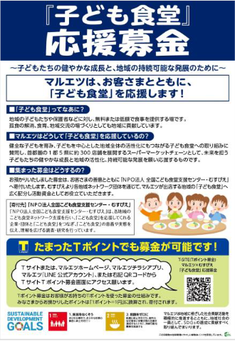 マルエツはこの募金額と同等額を拠出し、合計1677万4000円を「NPO法人全国こども食堂支援センター・むすびえ」を通じて、同社が出店する地域の子ども食堂へ寄付した。この支援は、2020年9月から開始し、累計寄付額は3651万9000円となった。