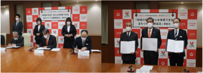 流通スーパーニュース > CSR > ユニバースnews|八戸市・八戸地区連合防犯協会との連携協定締結 ユニバースnews|八戸市・八戸地区連合防犯協会との連携協定締結 CSR / 2021年10月20日 ツイート (株)ユニバース(青森県八戸市、三浦建彦社長)は10月19日(火)、八戸市および八戸地区連合防犯協会と「地域の安全・安心を実感できるまちづくり連携協定」を締結した。 この協定により、犯罪の未然防止、犯人の早期検挙、子供・女性の安全確保などに有効な防犯カメラを必要な箇所に設置する。また、地域の防犯環境を向上させることにより、安全・安心を実感できるまちづくりの実現を目指す。 ツイート