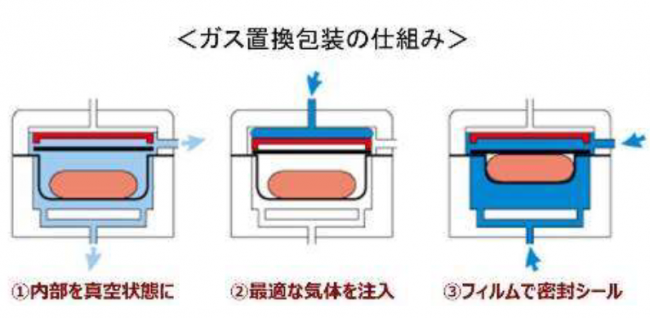惣菜・サラダの容器内の空気を調理品に適したガスに置き換えて密封(ガス置換包装)することで、消費期限を従来の2日から3日へ、1日延長することが可能になった。また、ふた部分をトップシール化することで、プラスチック使用量の削減も見込んでいる。