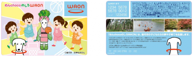 また取り組みの一環として、イオンは11月25日(木)からご当地WAON「「めんchoco のしろ WAON」を発行する。カードの表面には、能代市マスコットキャラクター 「白神ねぎのん」がデザインされている。