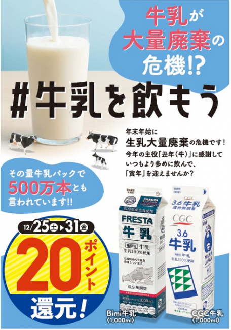 フレスタnews|牛乳消費拡大キャンペーン/1本購入で20ポイント12/25展開