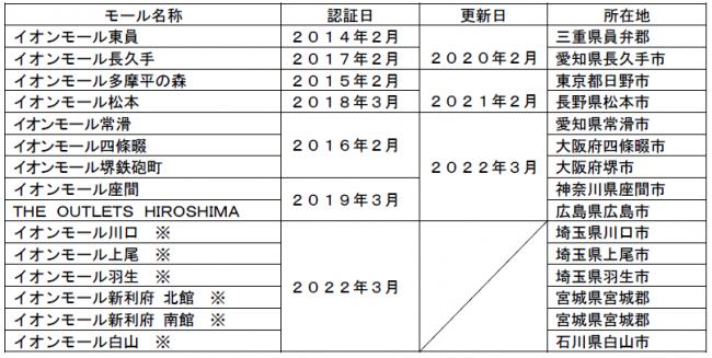 イオンモールは、気候変動など地球規模の環境問題に取り組むだけでなく、地域に根ざし、自然と調和したまちづくりを推進している。ABINC認証は 2014年に三重県の「イオンモール東員」で初めて取得した。今回の6施設が取得したことで、取得は合計15施設となった。