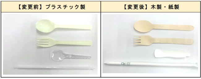 今回は、プラスチックの使用量削減の取り組みの一つとして、フジ直営全店舗で、弁当などの購入時に渡すカトラリー類(スプーン、フォーク、ストローなど)を、プラスチック製から紙製や木製に切り替え、さらなる使い捨てプラスチックの削減に取り組む。この取り組みによって年間約 7t の使い捨てプラスチックの削減につながる。
