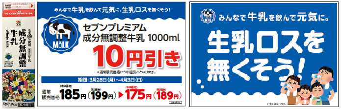 流通スーパーニュース > CSR > ヨークベニマルnews|期間限定でPB牛乳10円値下げ/春休みの牛乳消費喚起 ヨークベニマルnews|期間限定でPB牛乳10円値下げ/春休みの牛乳消費喚起 CSR / 2022年03月25日 ツイート (株)ヨークベニマル(福島県郡山市、真船幸夫社長)は、学校が春休みとなる時期を迎え、牛乳や乳製品の需要減に伴う生乳の需要が減り廃棄される懸念がある状況を踏まえ、期間限定で、プライベートブランド「セブンプレミアム成分無調整牛乳1000㎖」牛乳を通常売価より10円値下げして販売する。これにより牛乳の消費喚起を図る。 値下げ販売期間は3月28日(月)から4月3日(日)まで。 ツイート
