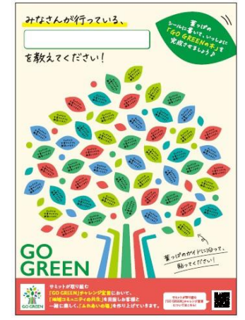「GO GREEN」の木のポスターは、「環境によいこと」「健康によいこと」等、各店舗が決めたテーマに沿って、顧客が日頃していることを葉っぱ型のシールに記入し、「GO GREEN」の木のポスターに貼ることで、それぞれの店舗オリジナルの「GO GREEN」の木が完成する仕掛けだ。同様にそれぞれの社員もテーマに沿ってしていることをシールに記入して社員用のポスターに貼り、顧客用ポスターと共に掲示することで、より良い社会への想いを共有する。