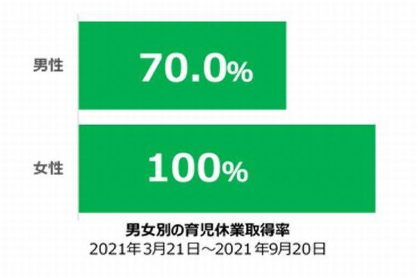 もう一つは、男性職員の育休取得率100%を目指し取り組みの強化。男性職員の育休取得率は、2021年度上期に70.0%を達成し、2020年度(42.9%)から大幅アップした。そこで2023年度は100%とすることを目指す。