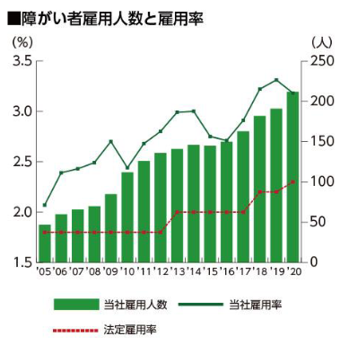 グラフはサミットの障碍者雇用人数と雇用率。高い割合であることがわかる