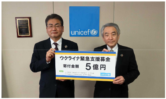 コープデリnews|ウクライナ緊急支援募金5億円を日本ユニセフ協会に贈呈