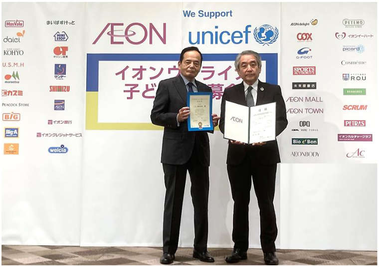 また、これに先立つ3月14日(月)には、公益財団法人イオンワンパーセントクラブを通じて、公益財団法人日本ユニセフ協会に1億円の寄付金を贈呈している。