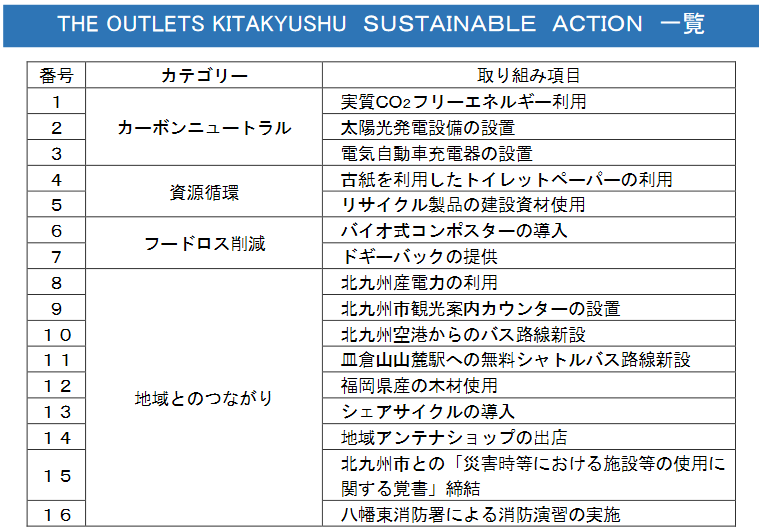 イオンモール(株)(千葉市美浜区、岩村康次社長)は、4月28日(木)にオープンする“地域創生型商業施設”「THE OUTLETS KITAKYUSHU」において、“SUSTAINABLE ACTION”に取り組む。
