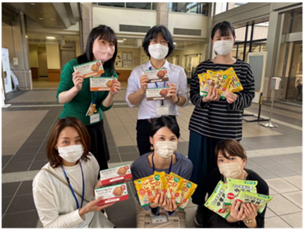 寄付した備蓄食料は、滋賀県社会福祉協議会が事務局の「子どもの笑顔はぐくみプロジェクト」を通じて、滋賀県内各地域の子ども食堂の運営や、食材を必要する人のために活用される。